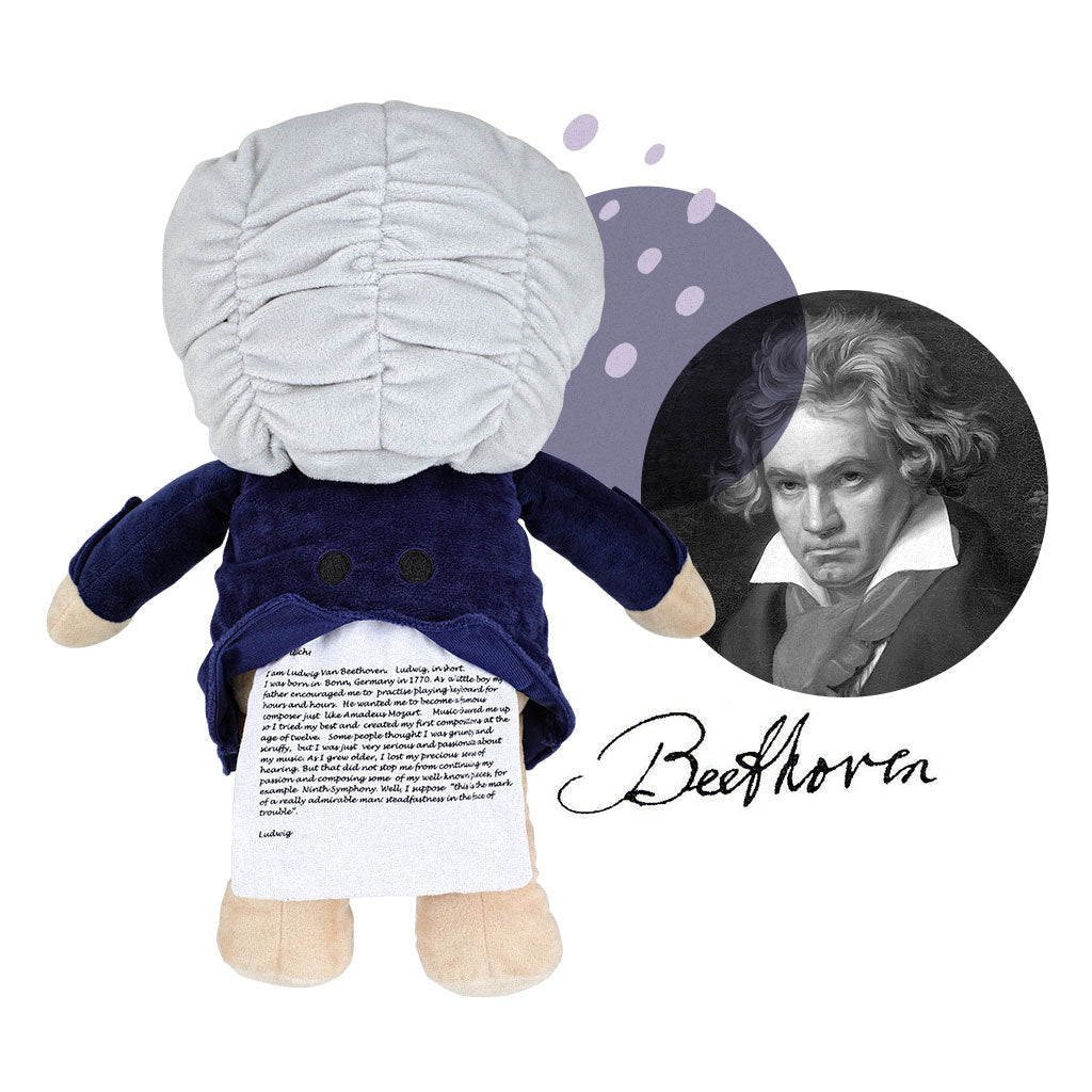 Miś Ludwig to pluszowa legenda. W jego repertuarze znajdują się m.in. takie hity jak Dla Elizy, V Symfoniai Oda do Radości,łącznie 8 muzycznych arcydzieł. Melodie te można łatwo przełączać a ich głośność kontrolować. Miś swoją bujną fryzurą i czerwonym szalem przypomina wizualnie samego Ludwiga van Beethovena. Nadrukowana na jego wewnętrznej kieszonce biografia rozbudzi wyobraźnię dziecka przybliżając mu historię życia sławnego kompozytora. Miś wykonany jest z wysokiej jakości, mięciutkich materiałów bardzo przyjemnych w dotyku. Spełnia wszelkie wymogi bezpieczeństwa do użytkowania przez dzieci już od pierwszych dni życia.